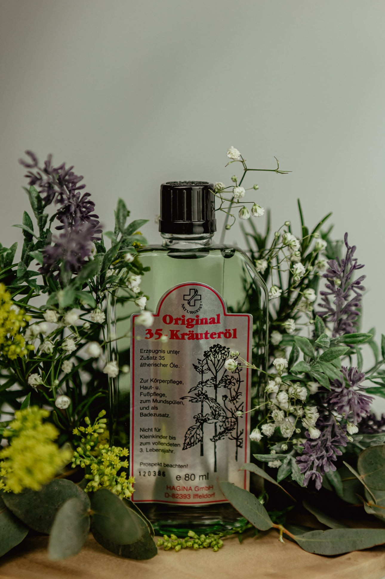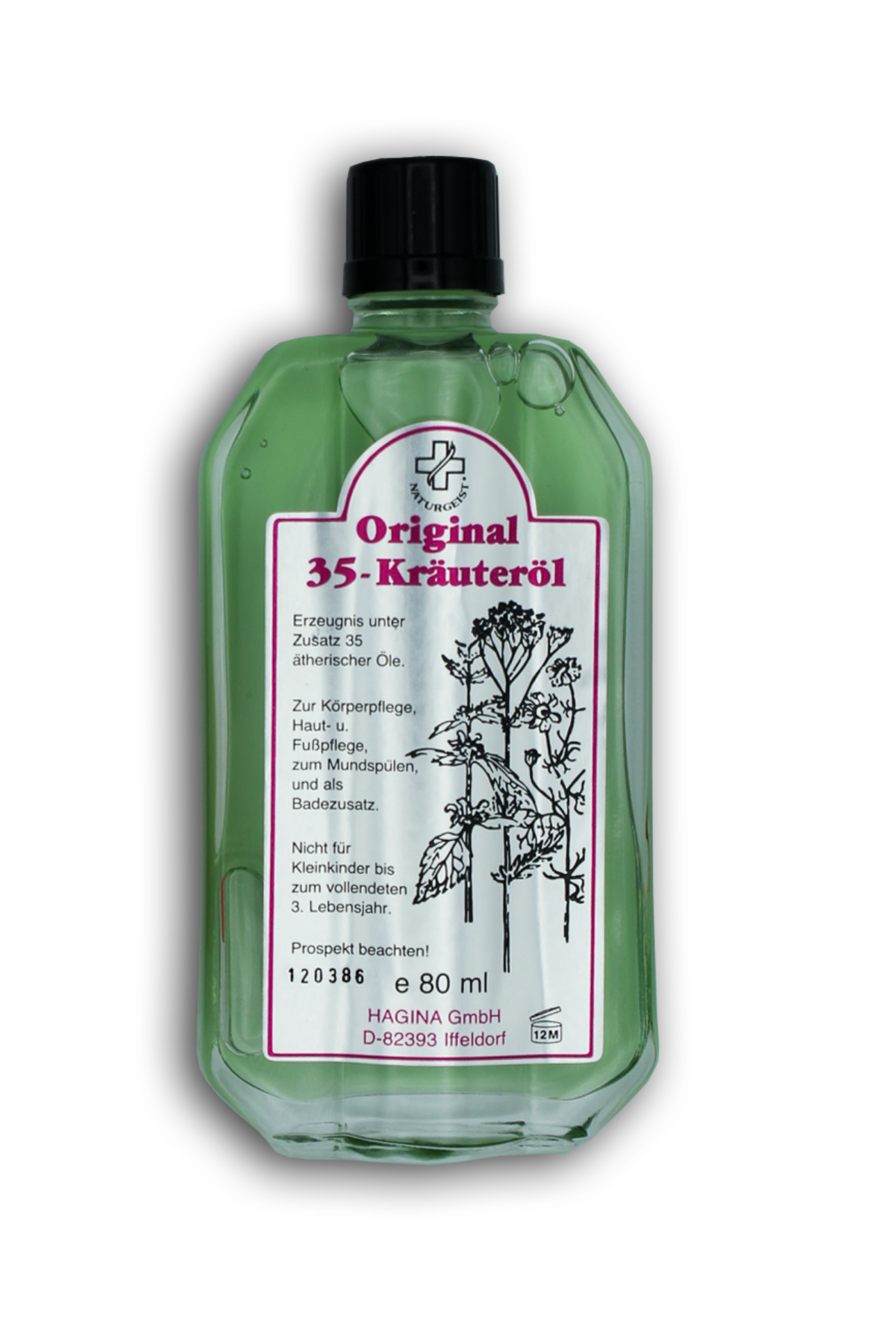 Cette huile spéciale à base de plantes est un produit pur issu de 35 plantes éprouvées. Il est polyvalent pour les soins du corps et peut donc être utilisé pour les soins de la peau et des pieds, les frictions, les rinçages buccaux, les inhalations et comme additif pour le bain. Le produit est utilisé pour maintenir le corps en bonne santé et a un effet rafraîchissant et revigorant. Il est parfait pour le nettoyage de la peau et les bains de vapeur du visage. Cependant, il ne convient pas aux jeunes enfants jusqu'à l'âge de trois ans (3 ans).