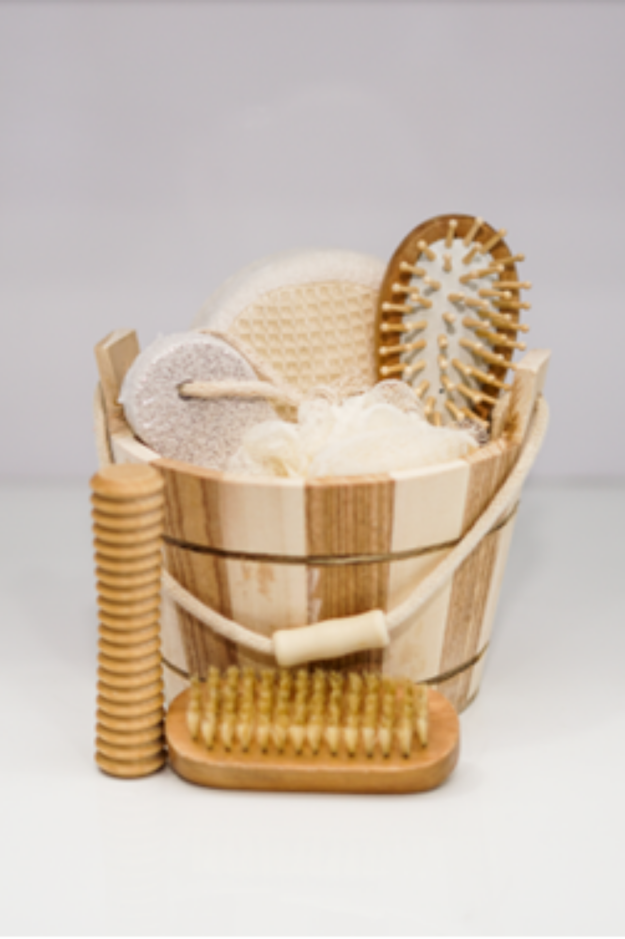 Seau en bois rayé