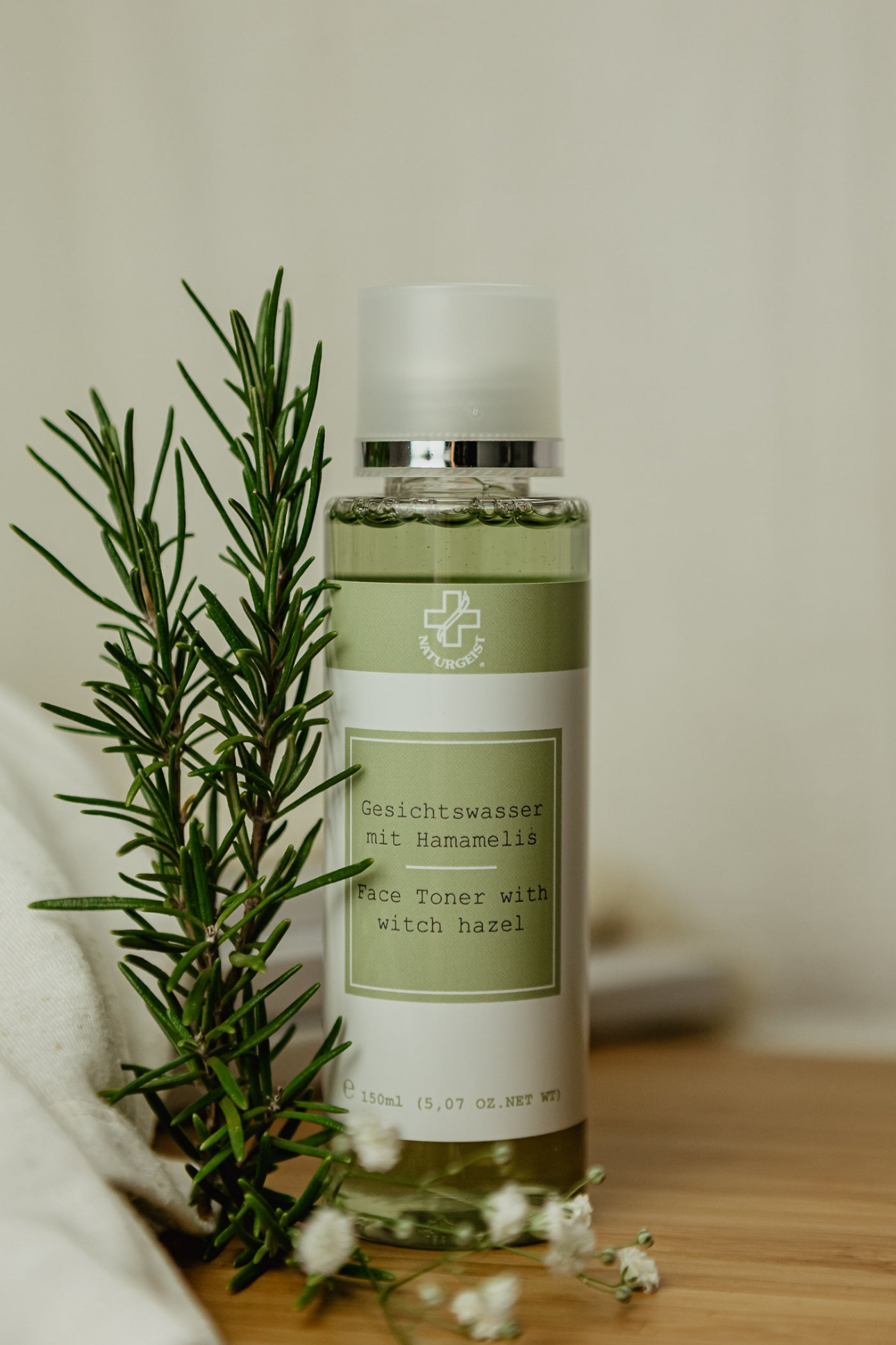 La lotion tonique pour le visage à l'hamamélis est rafraîchissante, apaisante et revigorante en douceur car elle contient de l'extrait d'hamamélis. Il est également anti-inflammatoire. Les autres ingrédients sont l'eau de rose et un complexe d'ingrédients à base de plantes. Le toner pour le visage convient à tous les types de peau, y compris les peaux sensibles.